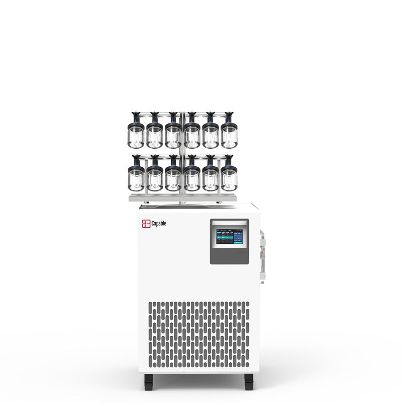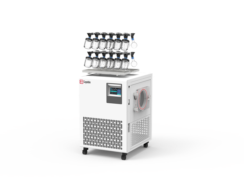 实验室立式冻干机 多歧管 T型管满足实验室大容量冻干需求,采用立式落地结构、配置滚轮,灵活移动,标配真空控制,提升冻干效率、冻干品质。bsport12-86实验室冻干机标配T型多歧管外挂阀,方便中途拿取样品、扩展使用各种冻干瓶、标配耐腐真空泵,标配油雾过滤器。适合多肽冻干、小分子药冻干、中药冻干。